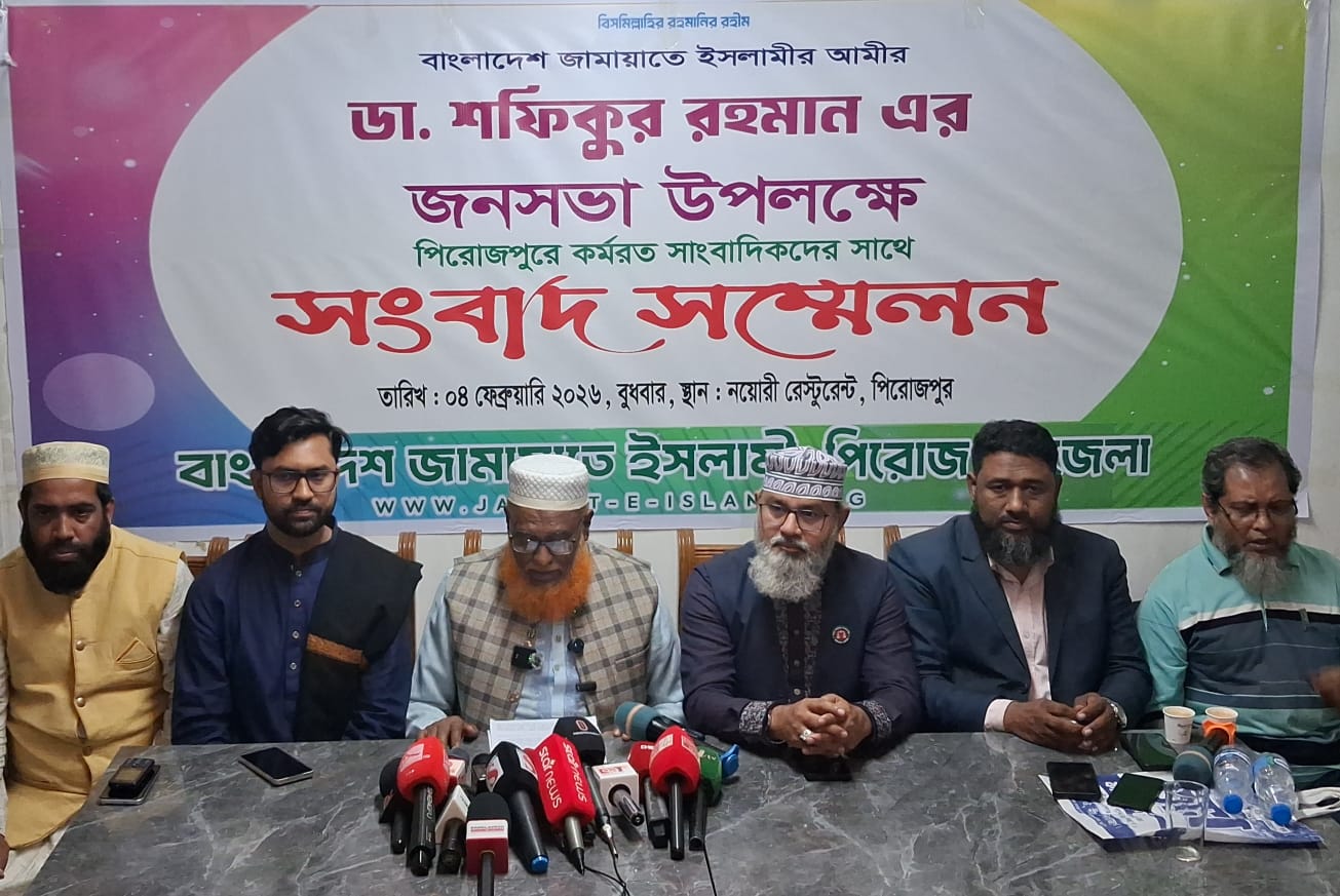 বাংলাদেশ জামায়াতে ইসলামীর আমীর ডাঃ শফিকুর রহমানের পিরোজপুরে আগমন উপলক্ষে জেলা জামায়াতের সংবাদ সম্মেলন