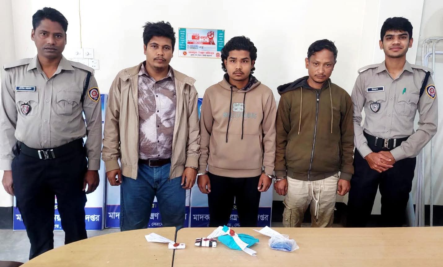 নেত্রকোনা মাদকদ্রব্য নিয়ন্ত্রণ অধিদপ্তরের অভিযানে, ১৫শত পিস ইয়াবাসহ তিন মাদক ব্যবসায়ী আটক