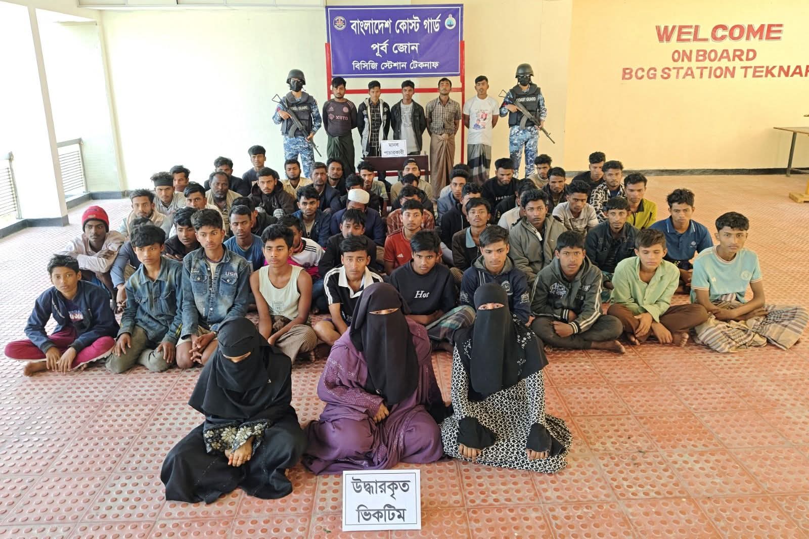 টেকনাফের বাহারছড়া কোস্ট গার্ডের অভিযানে ৫ মানব পাচারকারী নারী ও শিশুসহ ৫৫ জনকে উদ্ধার।