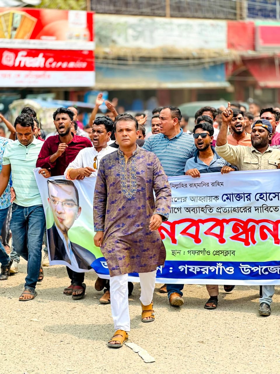 গফরগাঁও উপজেলার ছাএদলের আহবায়কের অব্যাহতি বাতিলের দাবিতে মানববন্ধন করা হয়
