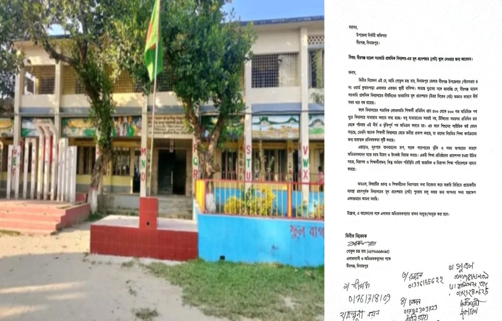 বীরগঞ্জে প্রাথমিক বিদ্যালয়ের গেট বন্ধ: অতিরিক্ত পথ পাড়ি দিয়ে দুর্ভোগে শতাধিক শিক্ষার্থী