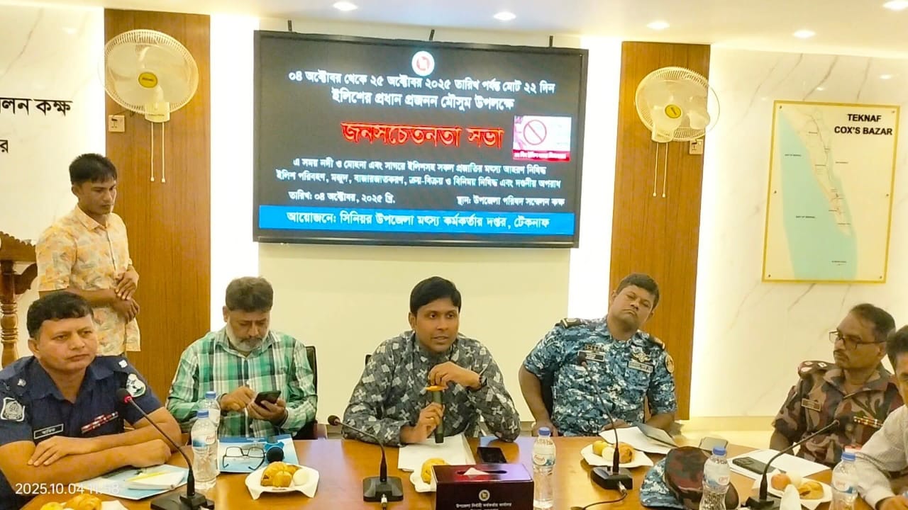 কক্সবাজারের টেকনাফে আজ ৪ অক্টোবর থেকে ২৫ অক্টোবর পর্যন্ত মোট ২২ দিন ইলিশের প্রধান প্রজনন মৌসুম উপলক্ষে জনসচেতনতা সভা অনুষ্ঠিত হয়েছে। সিনিয়র উপজেলা মৎস্য কর্মকর্তা দপ্তরের আয়োজনে এ সভাটি আজ ৪ অক্টোবর ২০২৫ ইংরেজী উপজেলা পরিষদ সম্মেলন কক্ষে সকাল ১১টায় অনুষ্ঠিত হয়।