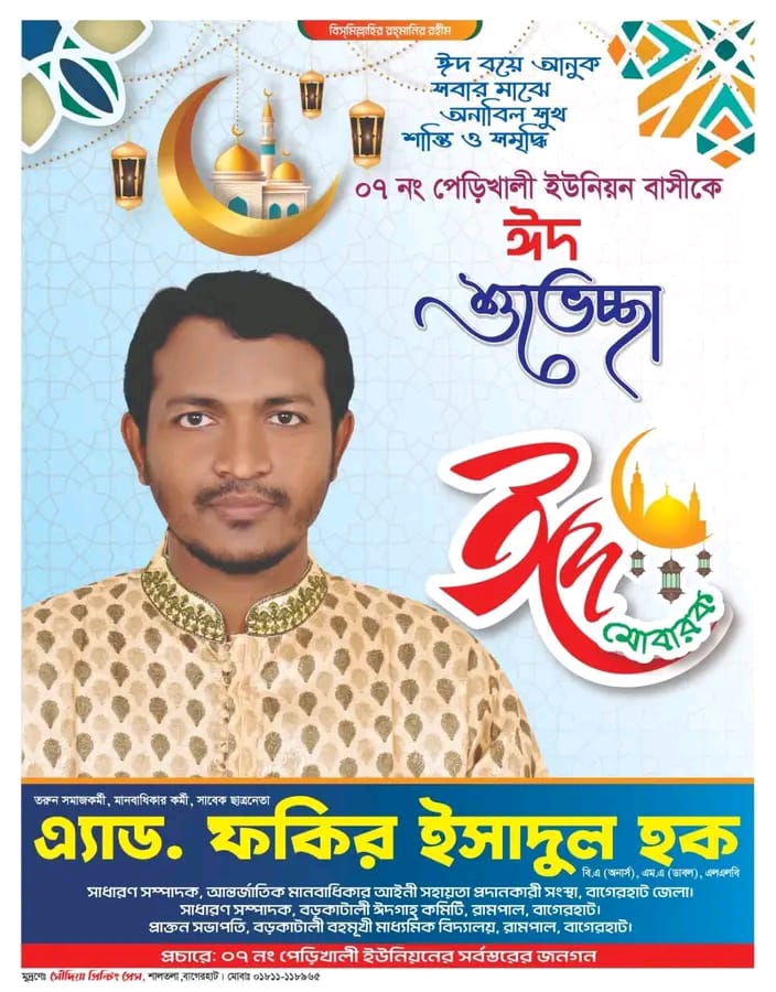 তরুণ সমাজকর্মী ও মানবাধিকার কর্মী এ্যাডভোকেট ইসাদুল হক (বান্না)-কে জনপ্রতিনিধি হিসেবে দেখতে চায় পেড়িখালী ইউনিয়নের সাধারণ মানুষ