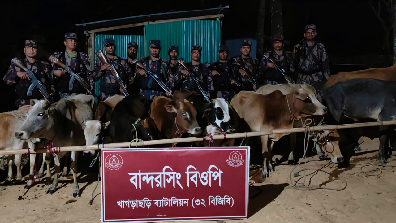 খাগড়াছড়ি ব্যাটালিয়ন (৩২ বিজিবি) কর্তৃক পরিচালিত চোরাচালানবিরোধী অভিযানে ১২টি ভারতীয় গরু জব্দ করা হয়েছে। জব্দকৃত গরুগুলোর আনুমানিক বাজারমূল্য ৭ লাখ ২০ হাজার টাকা।