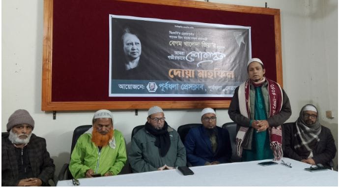 নেত্রকোনার পূর্বধলায় বেগম খালেদা জিয়া-এর মৃত্যুতে বাংলাদেশ জাতীয়তাবাদী দল (বিএনপি) চেয়ারপার্সন ও সাবেক তিনবারের প্রধানমন্ত্রী হিসেবে তার আত্মার মাগফিরাত কামনায় পূর্বধলা প্রেসক্লাবের উদ্যোগে এক দোয়া মাহফিল অনুষ্ঠিত হয়েছে।