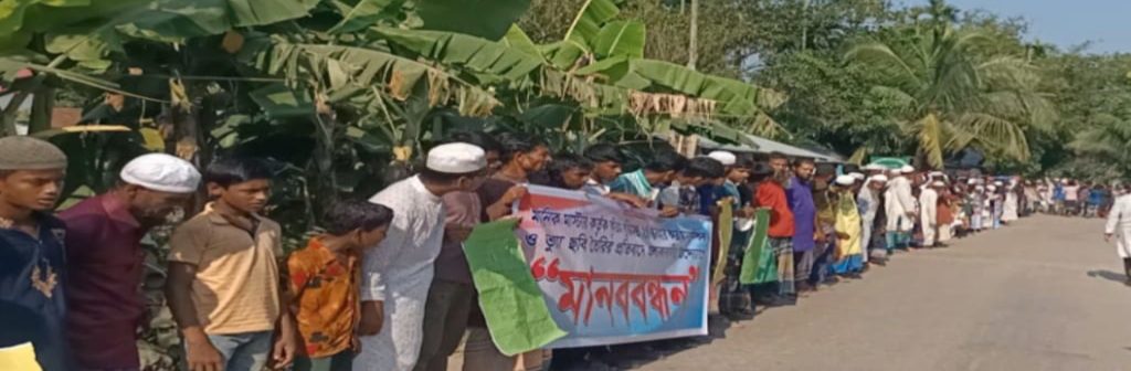 মদনে সহকারি শিক্ষককের বিরুদ্ধে অশালীন বক্তব্য দেয়ায় শিক্ষক মানিকের বিরুদ্ধে মানববন্ধন