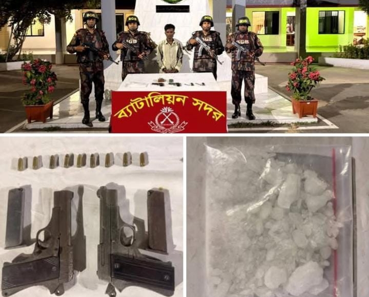 টেকনাফে বিদেশী পিস্তল, ভয়াল মাদক ক্রিস্টাল মেথ (আইস) উদ্ধার ও একজন অস্ত্র ও মাদক পাচারকারী আটক।