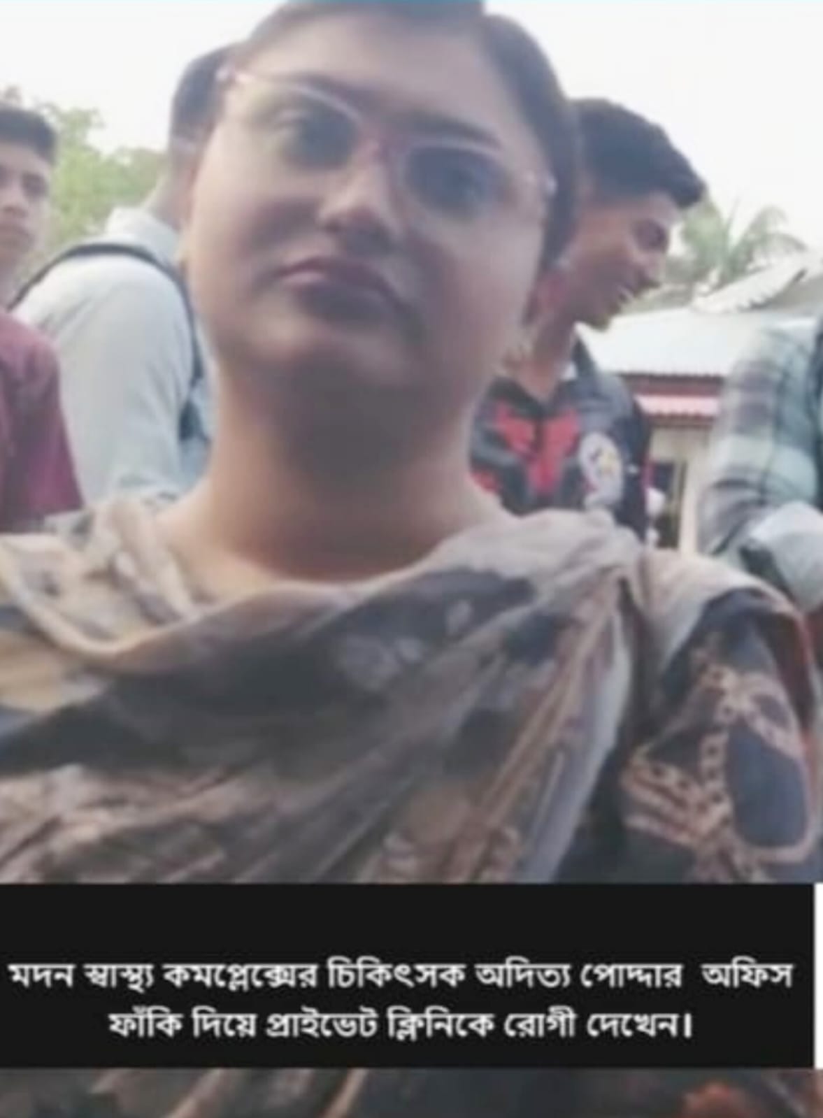 মদন স্বাস্থ্য কমপ্লেক্স: সরকারি ডিউটি ফেলে ক্লিনিকে রোগী দেখছেন ডা. অদিত্য পোদ্দার
