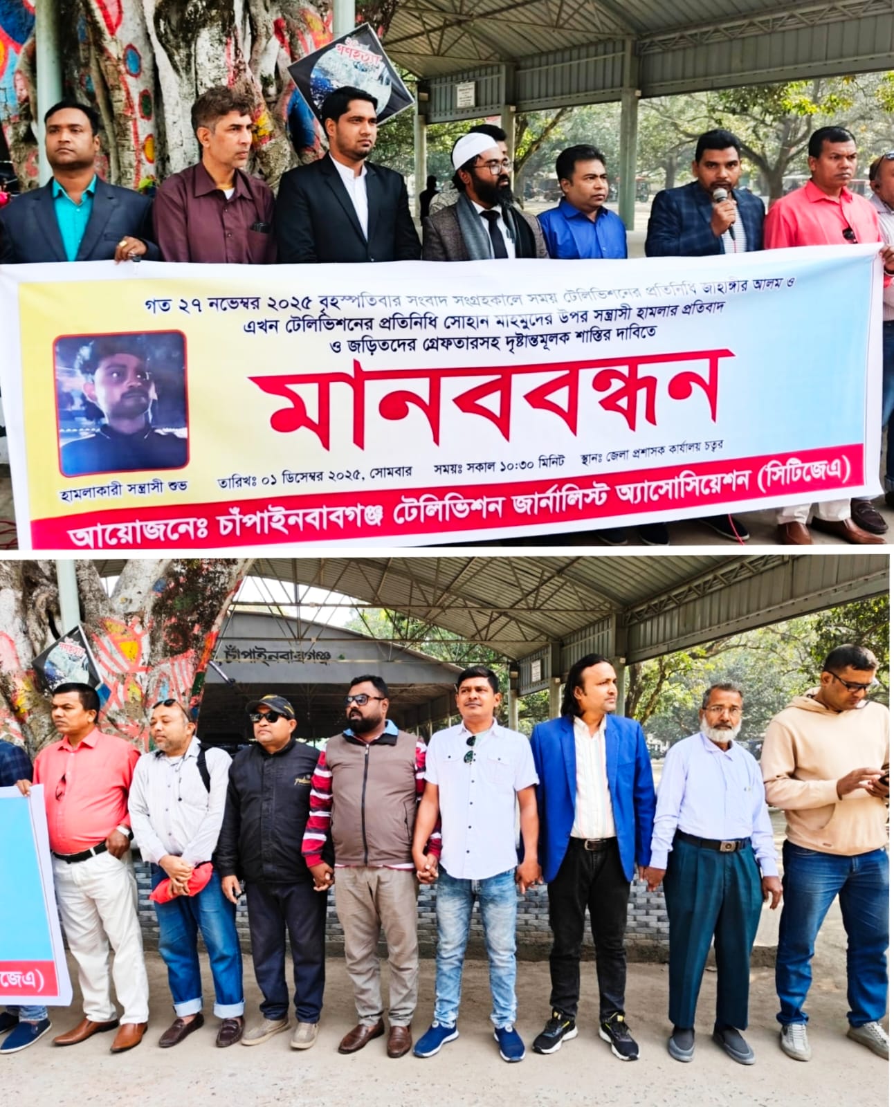 মাহিদুল ইসলাম ফরহাদ চাঁপাইনবাবগঞ্জ জেলা প্রতিনিধি চাঁপাইনবাবগঞ্জে সংবাদ সংগ্রহকালে সময় টেলিভিশনের প্রতিনিধি জাহাঙ্গীর আলম ও এখন টেলিভিশনের প্রতিনিধি সোহান বিস্তারিত...