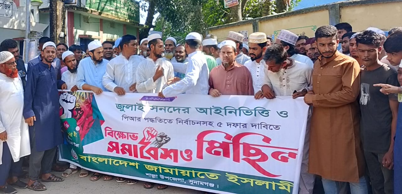 শাল্লায় ৫ দফা দাবীতে বাংলাদেশ জামায়াতে ইসলামীর বিক্ষোভ মিছিল ও প্রতিবাদ সমাবেশ
